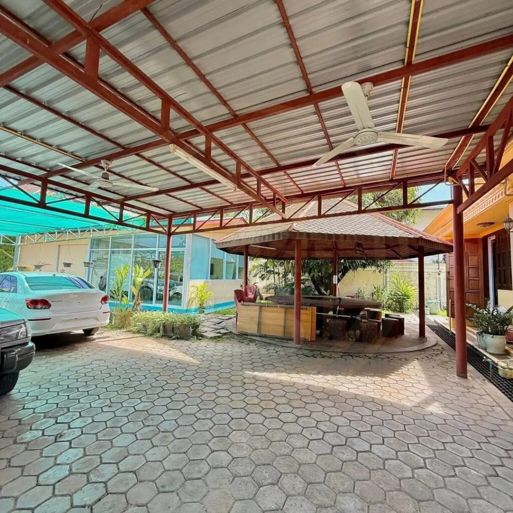 - ມີເດີ່ນບ້ານຈອດລົດໄດ້ຫຼາຍຄັນ 🚗